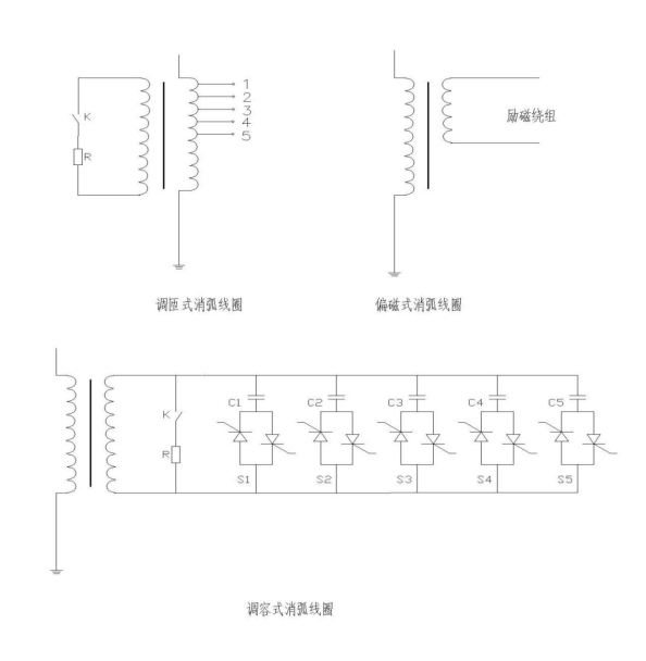 消弧線圈的作用是當電網發生單相接地故障時,提供電感電流,補償接地電容電流,使接地電流減小,也使得故障相接地電弧兩端的恢復電壓速度降低,達到熄滅電弧的目的。按照電感調節方式的不同,消弧線圈可分為:調匝式、偏磁式、調容式等。根據運行方式又可分為預調式和隨調式。